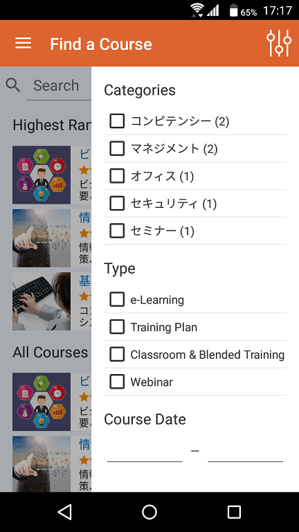 LMS365は、iPhone、Android用の専用アプリを提供しています。受講者は全ての学習コースやトレーニングプランなどのeラーニング学習環境を、スマートフォンやタブレットなどモバイル端末を使うことで、いつでもどこでも利用するが出来るようになります。