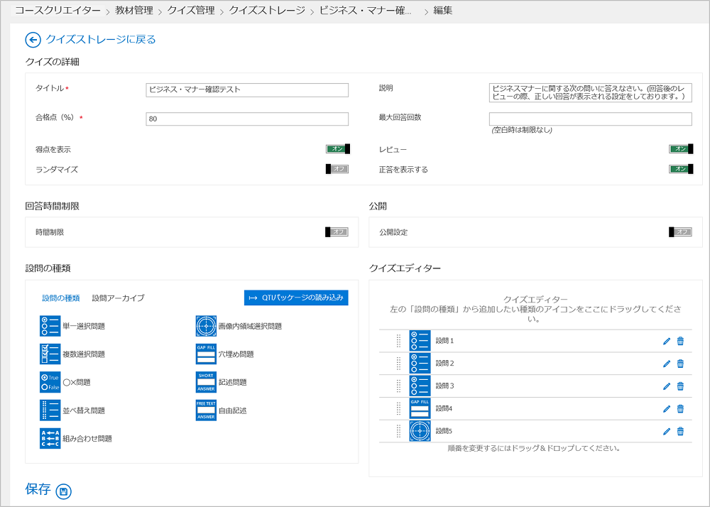 QTI形式で作成したテスト教材をインポートすることで、eラーニング用学習教材の作成にかかる負担を大きく軽減することが出来ます。