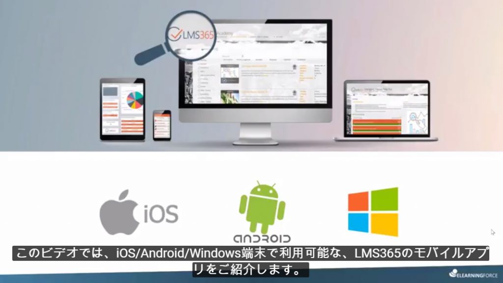 モバイルアプリを使用すると、SCORMで作成された学習コースをモバイル端末でいつでも、どこでも受講できます。