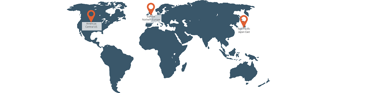 今まで以上に高い品質のサービスを提供するため、従来の北ヨーロッパ、及びアジア太平洋地域(東日本)の他、中央アメリカのリージョンも選択できるようになりました。すべて該当地域のMicrosoft Azure Data CenterからLMS365のサービスが配信されます。