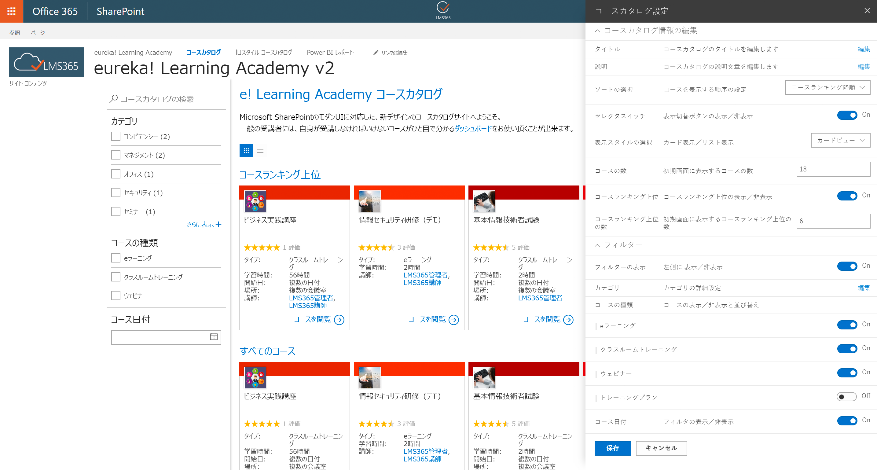 7.アドインをアップデートすると、新しいSharePoint Webパーツとして「Course Catalog」がLMS365 Webパーツギャラリーに追加されます