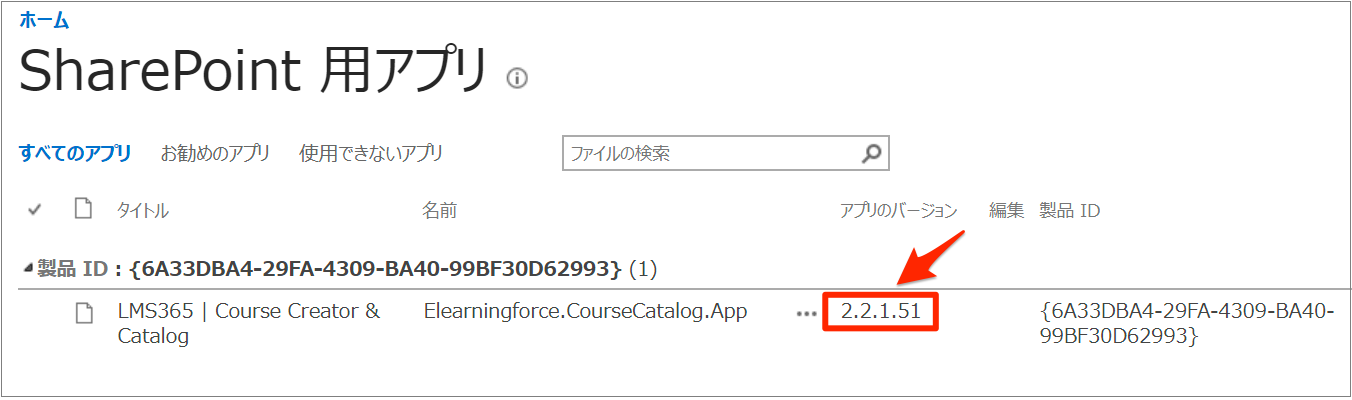 2.テナント管理者にてSharePoint Onlineアプリカタログに移動し、既存の「Elearningforce.CourseCatalog.App.app」に上書きしてください